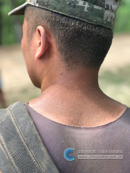 见到老赵时他正穿着迷彩服,背着笨重的打草机,在“土雾缭绕”中劳作,汗水早已把衣服浸透,他还有几个月就要退休了,自己想着在退休前完成创建任务,也好光荣退休。纵使青丝化白发,依然心比金坚,老同志从早上5点多就开始上堤打草,一直干到中午11点回段上匆匆吃过饭后,没有多余的时间好好休息。打草任务量很大,为了赶进度,自己盘算着时间,确保每天都能完成既定的任务量,下午早出工,直到天黑看不清作业了才算结束一天的工作。
