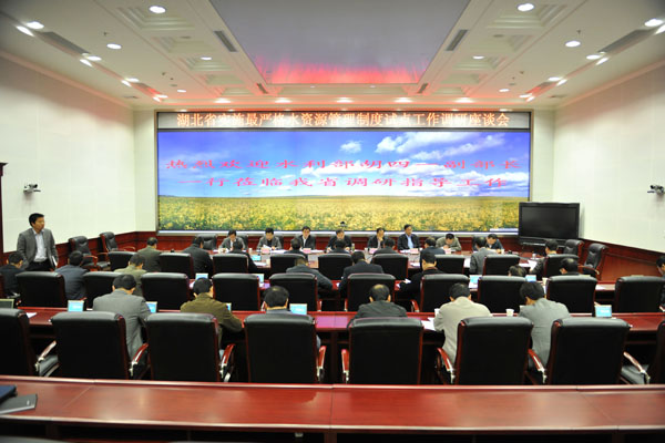 胡四一副部长首先介绍了水利部推进最严格水资源管理制度实施工作进展;充分肯定了湖北省试点工作所取得的成效,湖北省试点方案全面系统,目标明确,可操作性、指导性、示范性很强。2012年8月水利部和湖北省政府联合批复试点方案后,省委、省政府高度重视,完成试点顶层设计,启动责任考核工作,初步建立指标体系,着力加强能力建设,强化水资源监督管理,全省上下形成了实行最严格水资源管理制度的高度共识,态度坚定不移,推进扎实有序。特别是在10月30日召开高规格的试点动员电视电话会议,省委书记、省长亲自出席会议并讲话,在各个市州产生强烈震动和反响。