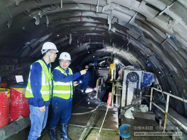 在滇中引水工程香炉山隧洞TBM掘进大埋深洞段,黄书岭(右)进行现场指导 本报通讯员 方历娇 供图