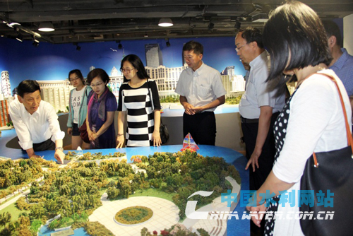 5月26日下午,党员们在梦清馆了解苏州河由黑变清的治污历程