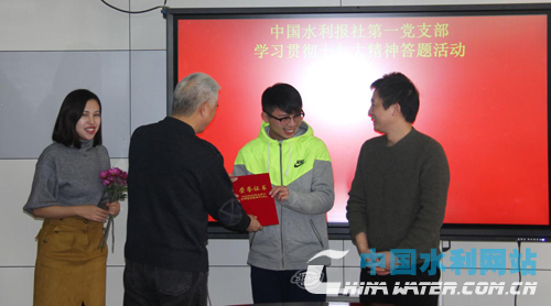 中国水利网站11月29日讯 11月24日,中国水利报社第一党支部举行了党的十九大精神专题学习及答题活动。社党委委员、总编辑李先明以支部党员身份参加出席活动。
