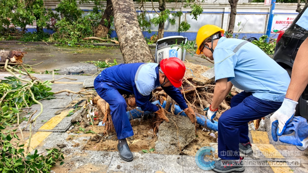 在湛江市霞山区工农路,多棵树木被连根拔起,沉重的树干砸断地下供水管道,导致周边7个小区超4300户居民用水受到影响。湛江粤海水务抢修人员迅速奔赴现场,撬开被杂物覆盖的阀门井盖,凭借着丰富经验,在浑浊的积水中摸索阀门轮盘,用尽全力一扣一扣地拧动,终于及时将其关闭,为后续抢修争取了宝贵时间。与此同时,在遂溪县,由于城市供电受台风影响一度中断,遂溪粤海水务一方面加强与相关部门沟通,争取尽快恢复生产,另一方面全面调度工程、探漏、抄表等各工种应急抢修人员,提前充分准备,确保风势减弱后第一时间投入抢修。